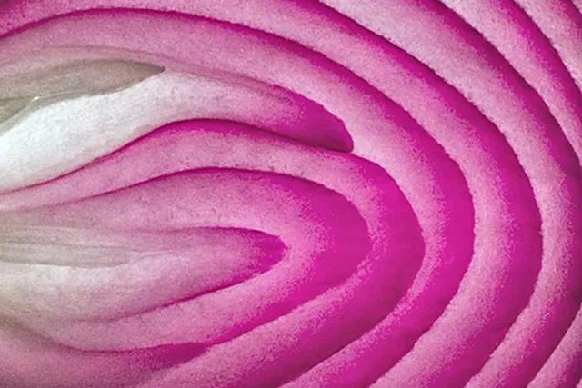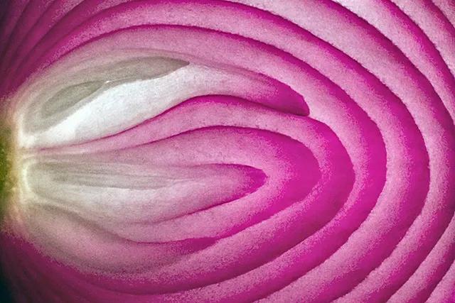 洋蔥底部的根須,破壞了規律線條的抽象感