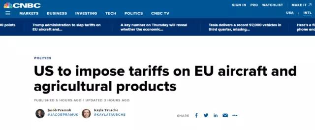 近日,美國政府對歐洲多類產品征收25%的關稅,共計征收75億美元(相當于69億歐元,在WTO歷史上創紀錄的)的新關稅。以報復波音公司和空客公司之間的爭端,并稱這是對歐洲對空客補貼長期貿易戰的回應。