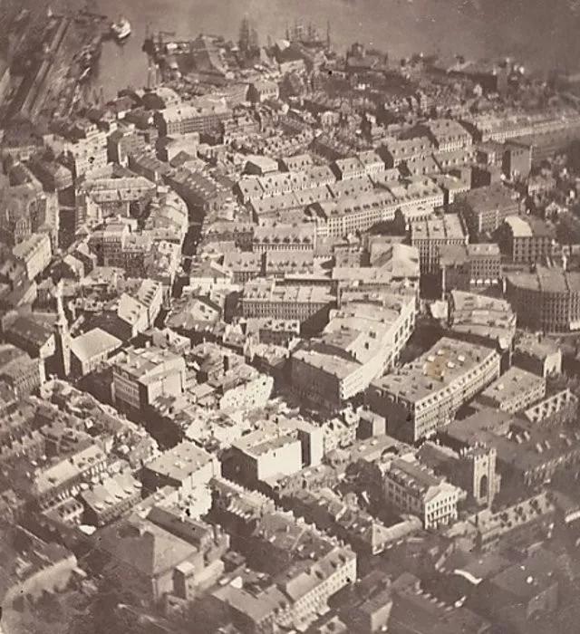 這張在 1860 年拍攝的照片對于航拍這項技術來說有著開拓性的意義,它在 2000 英尺的高空中向我們展示了波士頓的景色。