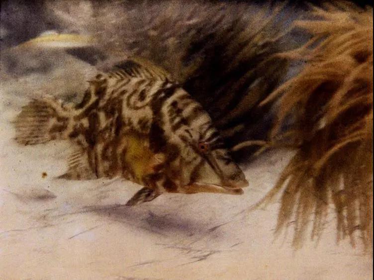 1926 年,國家地理攝影師查爾斯·馬丁(Charles Martin)和植物學家威廉·朗利(William Longley)拍下了第一張水下彩色照片。這對搭檔將相機裝入了防水的盒子中,使用鎂離子發電的閃光燈,拍下了圖中這條長棘毛唇隆頭魚。