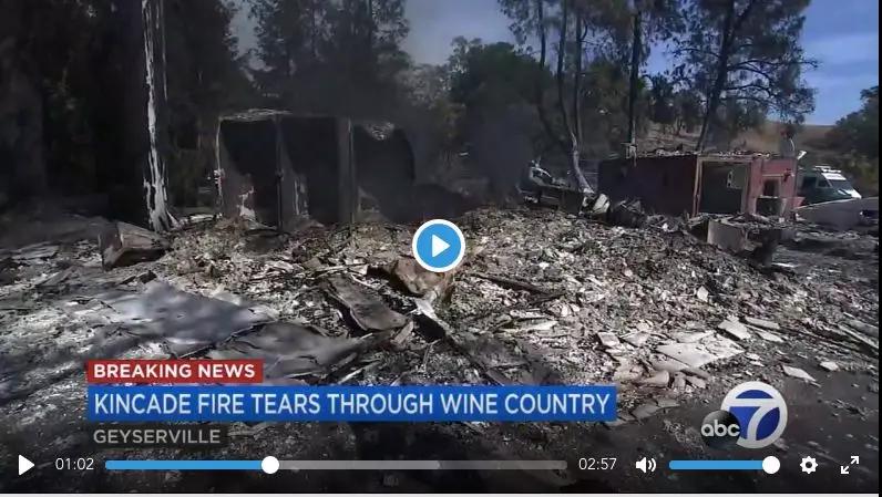 本次山火被稱為:Kincade,于美國當地時間10月23日夜晚發生,火勢猛烈,索多瑪縣北部上千名居民緊急撤離。至24日下午,火勢持續蔓延,Geyserville縣居民被迫疏散。加州州立大學、圣貝納迪諾市也因為停電和大火在24日停課。