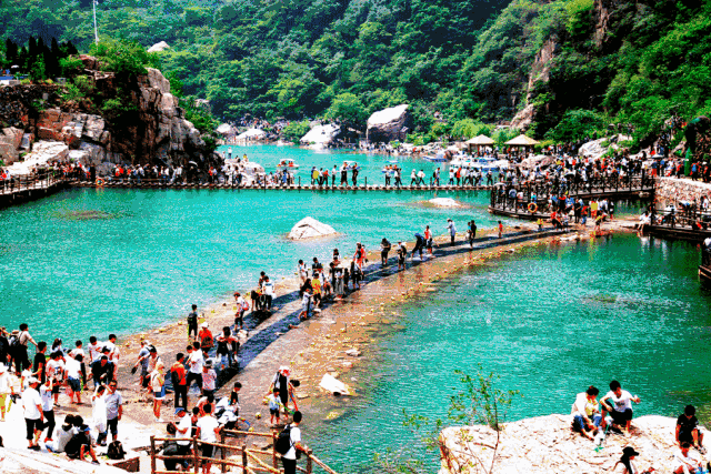 1、寶泉的水,風(fēng)平浪靜時(shí),像一顆深綠色的寶石鑲嵌在大地上,微風(fēng)吹過,泛起一道道美麗的浪花,嫵媚動(dòng)人;