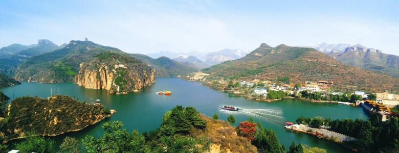 京娘湖 位于河北省邯鄲市西北60公里處活水鄉境內,位居太行山脈腹地。因宋太祖趙匡胤千里送京娘的凄美愛情故事而得名,景區成因于19億年以來多次大的地質運動,演化成如今奇峰峻巖之險,綠水丹崖之美。森林覆蓋率達98%以上,常年平均氣溫19攝氏度,是避暑休閑佳地。千嬌百媚的美人池和貞義島矗立昂然的公子峰相守相望,仿佛摯情京娘與宋太祖趙匡胤千年剪不斷理還亂的情緣,故事依舊在山水之間,在光影之間,在你我之間傳頌。