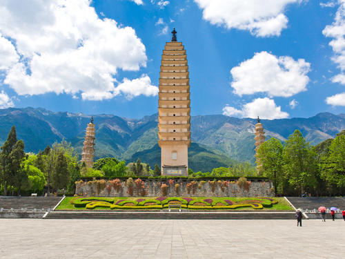 自用早餐后,乘車前往以風(fēng)、花、雪、月駐著稱的大理,(約180公里,行車約3H)游覽坐落于青山綠水,藍(lán)天白云間的[崇圣寺三塔],崇圣寺三塔為國家首批公布的全國文物重點保護(hù)單位,是大理的標(biāo)準(zhǔn)和象征,游覽期間,可真正讓你體會到大理“妙香佛國”的悠遠(yuǎn)意味(游覽時間90分鐘左右,不含景區(qū)電瓶車,乘坐自理);