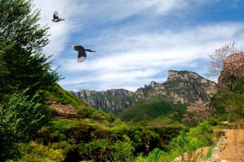 2、景區(qū)總面積89平方公里,其植被覆蓋率為90%,有天然氧吧之美譽(yù)。境內(nèi)斷崖高起,群峰崢嶸,陽剛勁露,臺(tái)壁交錯(cuò),蒼溪水湍,流瀑四掛,是“北雄風(fēng)光”的典型代表。