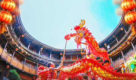 4、人人動手制作年糕,意寓來年人人步步高升;觀看舞龍表演,中國歷來都有以舞龍的方式來祈求平安和豐收的習慣;再放上鞭炮、焰火,讓您和家人的歡歌笑語,在客家土樓上空回蕩,好不愜意;