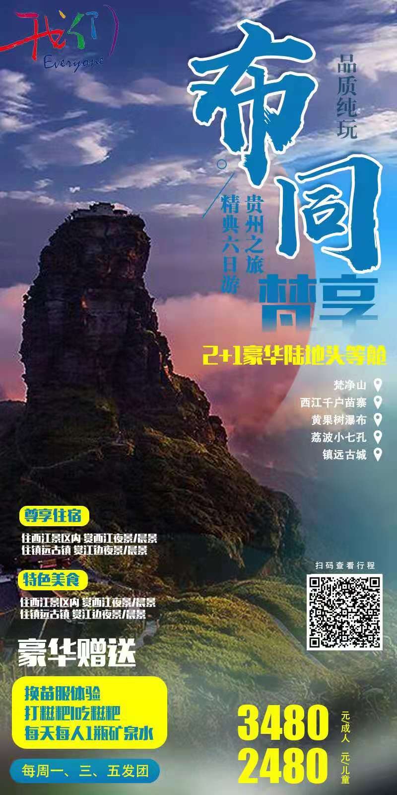 門票:含黃果樹門票;含梵凈山門票;含西江千戶苗寨門票;小七孔門票。
