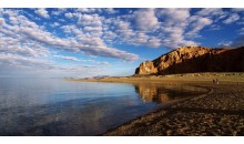 泛著魚肚白,然后當水天相接的地方閃現出第一縷光,金光便開始爭相恐后地從深淵中躍出來,打破這太過沉默的晨,直到這輪旭日完全沖破云層,晨曦播撒在納木措的湖面上、山坡上、草地上,柔和的光暈照亮了整個大地。見證靜謐如何生出熱鬧,見證黑夜如何誕出光明,除了壯觀,別無他言。