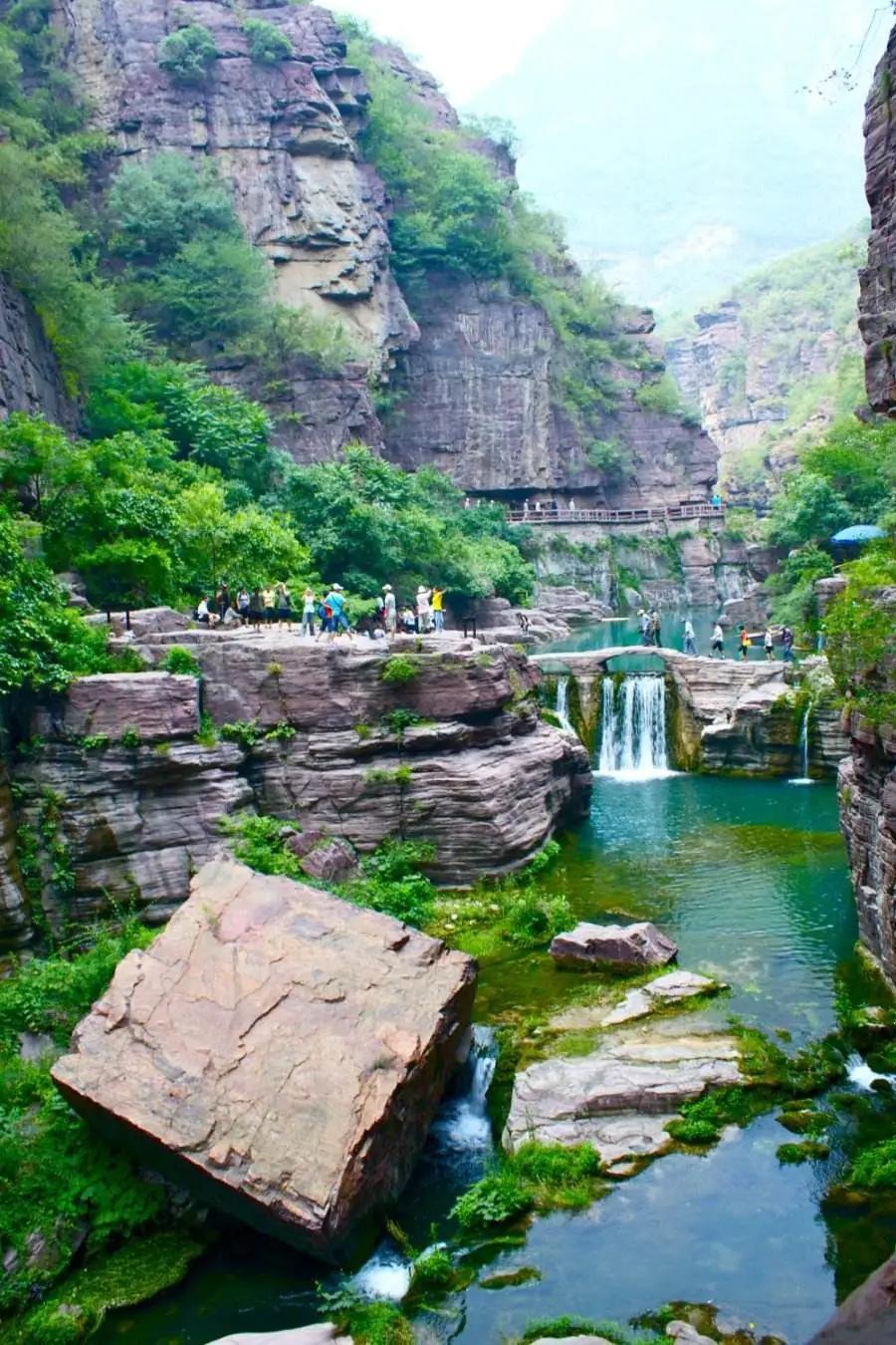 后前往云臺山,自行游覽盆景峽谷——【溫盤峪】(又名紅石峽)。那里集華夏山水與方寸之中;欣賞白龍瀑、黑龍洞、懸石、相吻石、含羞石、天女散化瀑等景觀,觀北方罕見景觀鐘乳石,盡情領(lǐng)略“真山、真水、真空氣”,游覽子房湖, 后游覽云臺山最高峰【茱萸峰】,茱萸峰是歷代文人墨客,僧道修行的圣地,這里植被茂密,古樹參天,有千年名樹紅豆杉,五角楓樹,太行花,森林覆蓋率高達93%,滿山覆蓋的都是原始次生林,有天然氧吧之美譽。踏千階的云梯棧道登上海拔1308米的茱萸峰頂,但見群山連綿,峰涌云動,使人頓生“會當(dāng)凌絕頂,一覽眾山小”的豪邁氣概。俯視腳下,群峰形似海浪涌。山頂氣候多變,倏忽間風(fēng)起云生,白霧從山間咕嘟嘟地涌出,紅日隨即隱去。山峰在云霧中出沒,云騰山浮,如臨仙界。玻璃棧道位于云臺山茱萸峰鳳凰嶺景點,在海拔1080米的半山腰上依崖而建。【玻璃棧道】分為兩段,其中一段沿崖壁呈U型,另一段懸于千米懸崖之上,總長400余米,寬約1.6米。(玻璃棧道體驗費,為20元/人需自理,如遇景區(qū)政策性關(guān)閉,則取消該景點,不另行通知,不退任何費用)