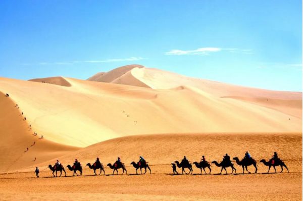 最后抵達【鳴沙山月牙泉,游覽約4h】,月牙泉處于鳴沙山環抱之中,其形酷似一彎新月而得名。鳴沙山為流沙積成,因沙動成響而得名,分紅、黃、綠、白、黑五色。1994年它被定為國家重點風景名勝區,榮獲“中國最美的五大沙漠之一”等榮譽稱號。“山以靈而故鳴,水以神而益秀”,能在沙漠之中流淌出這一灣清澈的泉水,實在是天工造化。鳴沙山、月牙泉古往今來以“山泉共處,沙水共生”的奇妙景觀著稱于世,被譽為“塞外風光之一絕”。