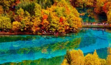隨著季節的變化,九寨溝也呈現出不一樣的風姿。初春時節,各色杜鵑、山桃花、野梨花相繼吐艷,夾雜著嫩綠的樹木新葉,整個林海繁花似錦;盛夏則是一場綠的聚會,新綠、翠綠、濃綠、黛綠,豐富而富有旺盛的生命力;深秋的九寨溝更是享譽世界,只見漸次經霜的彩林深淺相間、錯落有致,是“萬山紅遍,層林盡染”的最佳寫照,在漫山遍野濃烈的紅襯托之下,碧水更綠、藍天更藍,呈現出光怪陸離的水景;待入冬,莽莽林海都覆上皚皚白雪,林海雪原似玉樹瓊花,潔白、高雅,是觀賞九寨六絕之“藍冰”和“雪峰”的最好時機。