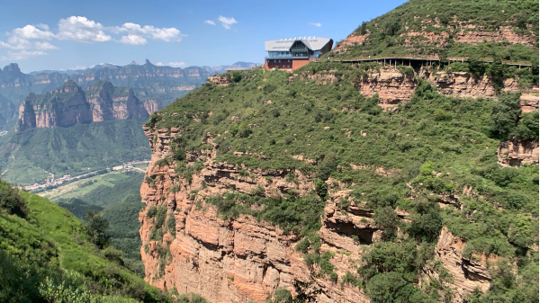 修建在海拔1000米以上的絕壁上,蜿蜒盤旋于山脊之上,神似游龍,玻璃棧道、石質棧道、觀景臺等一應俱全,建成后將成為華北地區最長的山脊棧道。景區開放后,游客可登臨棧道,近距離感受大山的雄壯與秀美。因地勢高,雨后乍晴,常有繚繞的白云沿著山谷升起,沿著站到綿延,行走于棧道之上,如踏云而行,此時漫步棧道,美哉壯哉,因此有“云端棧道”之美譽。