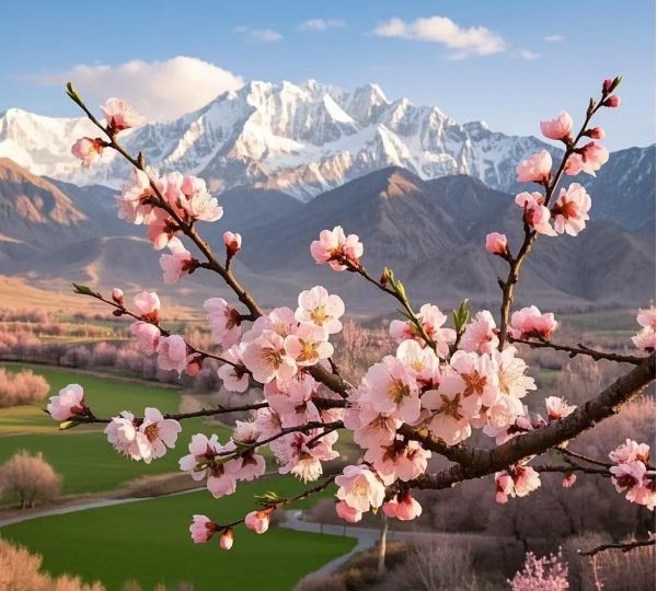 09:00-12:30  從塔縣出發(fā),一路經(jīng)塔莎古道,這是一條蜿蜒于喀拉昆侖山脈興都庫(kù)什山脈之間的隱秘古道前往杏花村,滿院的老杏樹迎著春風(fēng)盛開了,經(jīng)過一夜的小風(fēng)吹過,花瓣曼舞在陽(yáng)光下太浪漫了,整個(gè)村子都是嬌艷欲滴的粉嫩色,讓你真正體驗(yàn)“牧童遙指杏花村”的畫面,在這暢游大半天,享受不一樣的南疆之春;這里的杏花,與別處截然不同。它們并非精心栽培的園林景致,而是擁有千年生存智慧的野生古樹。在海拔三千米以上的嚴(yán)酷環(huán)境中,它們依偎著流淌的冰川融水,根系緊緊抓住貧瘠的砂石,綻開出震撼人心的生命力;