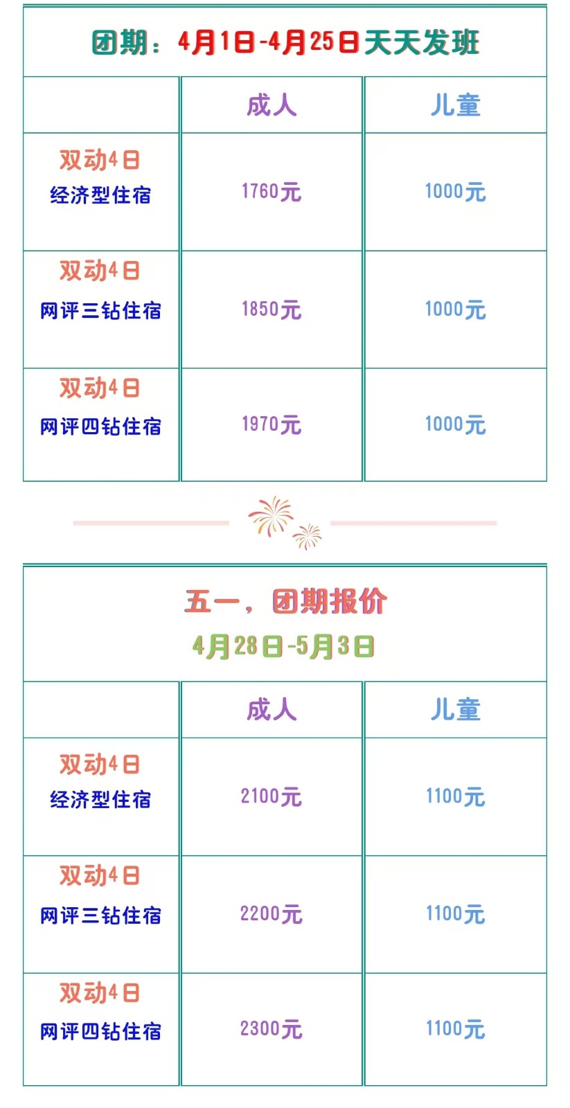 成人 ¥2300 /人, 兒童 ¥1100 /人