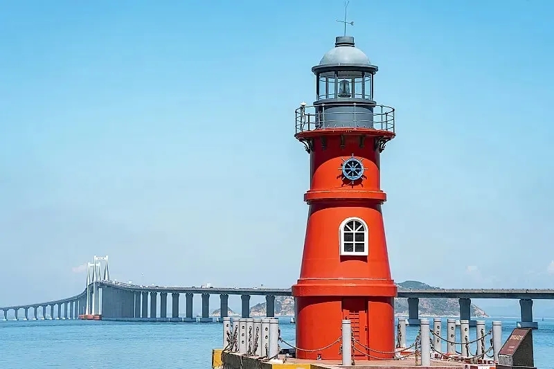 下橋后右側便是【啟航廣場】,在這里能合拍網紅【長山尾燈塔】,還能遠眺南澳大橋全景;