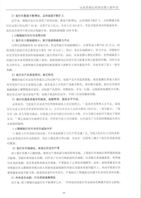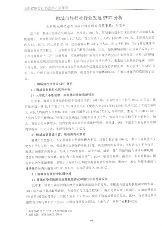 劉寶平在山東省旅行社協(xié)會特刊發(fā)表文章《聊城市旅行社行業(yè)發(fā)展SWOT分析》