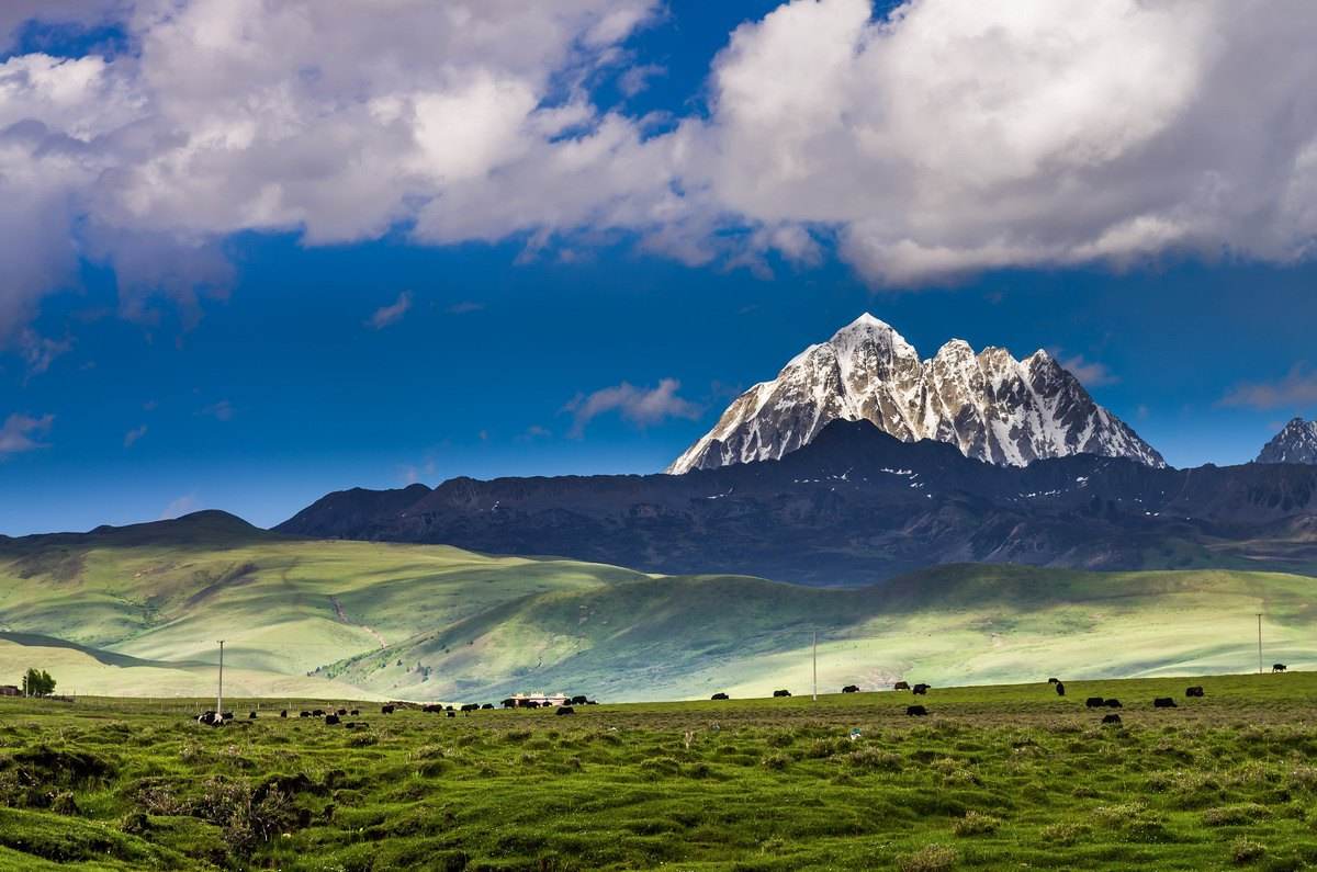 錯落有致的藏寨,星星點點的牛羊