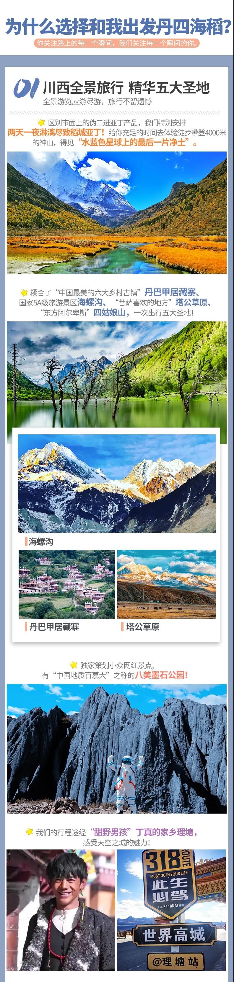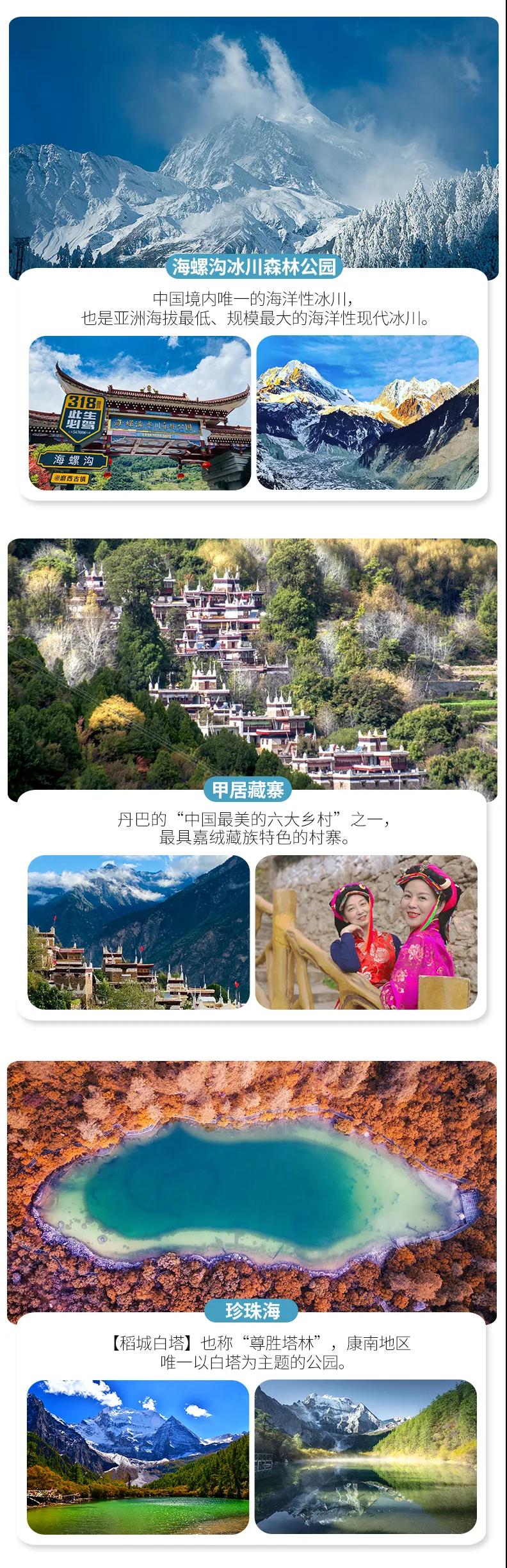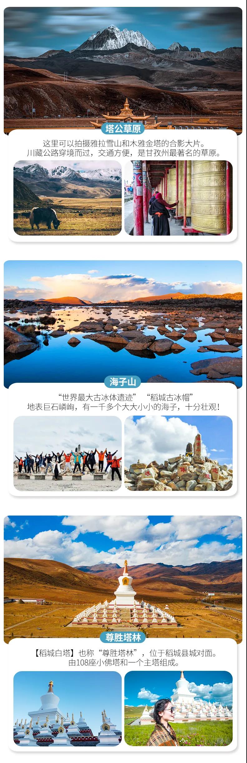 稻城亞丁+四姑娘山雙橋溝+丹巴甲居藏寨+墨石公園+海螺溝+理塘+塔公草原+新都橋