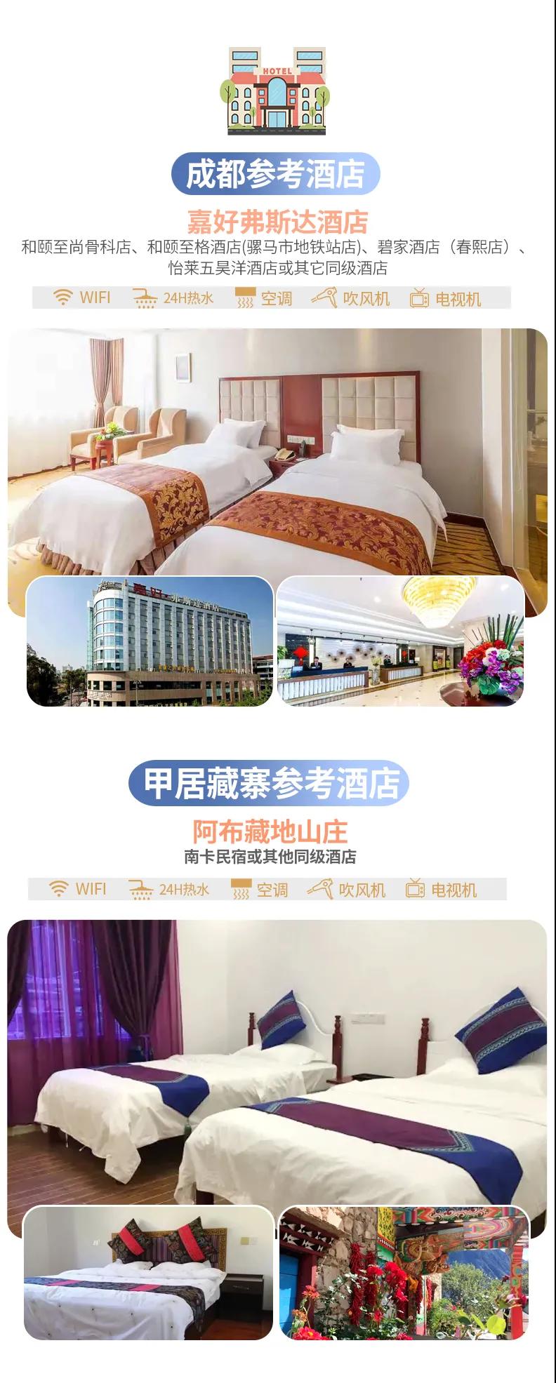 用餐:含酒店早餐、藏家晚餐;中餐不含,敬請自理。