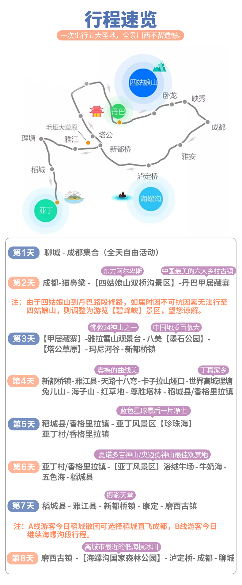 2、由于川西地區路況較差,山道狹窄,有可能因為堵車而發生延誤,請大家盡量預定第二天返程的航班或車次。
