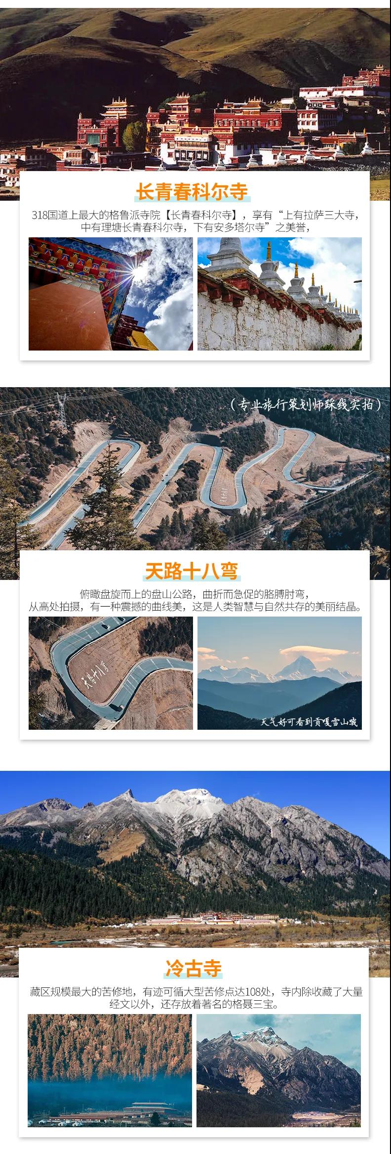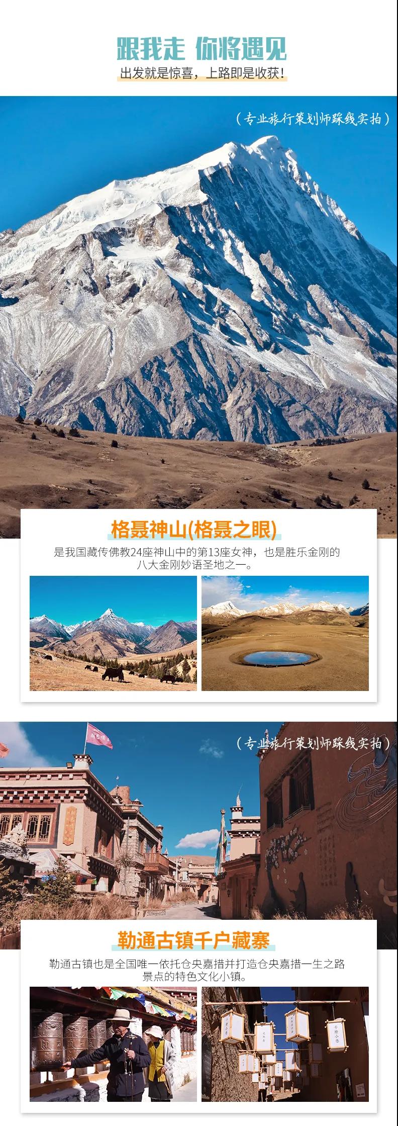 格聶神山+格聶之眼+木雅圣地滑雪+長青春科爾寺+勒通古鎮千戶苗寨+下則通村+冷古寺+海螺溝+理塘