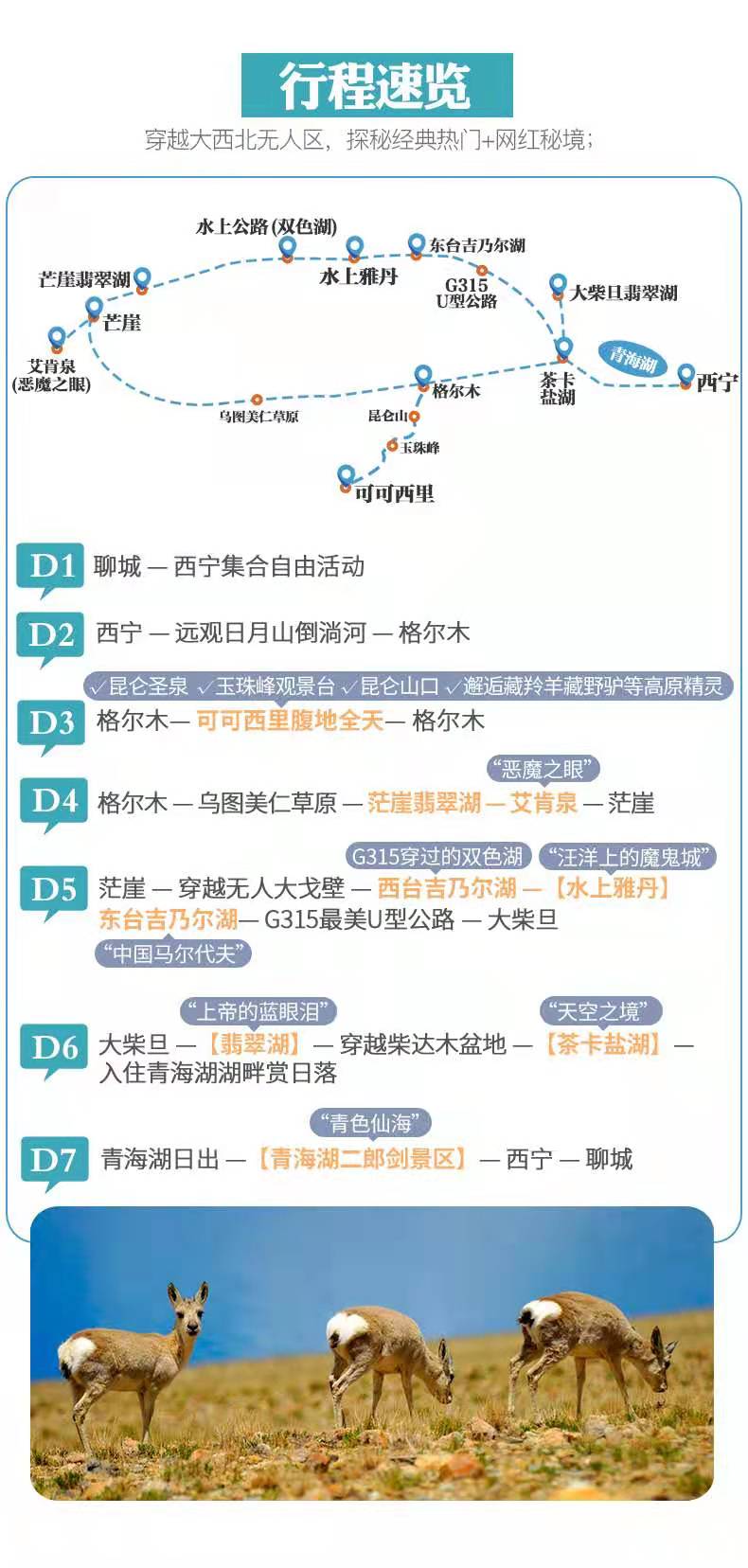 格爾木 — 可可西里腹地全天(昆侖圣泉、玉珠峰觀景臺、昆侖山口、邂逅藏羚羊藏野驢等高原精靈)— 格爾木