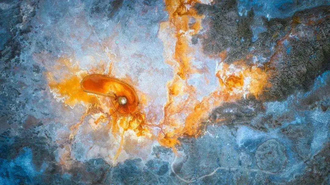 隨后我們前往阿拉爾草原深處去探索一方汩汩噴涌了上千年的地熱噴泉——【惡魔之眼”艾肯】,方圓百里,草木不生,鳥獸不近。“艾肯”在蒙語中意為“可怕”,而“艾肯泉”在蒙語中又意為“源頭”,因其湖水成分艾肯泉周圍寸草不生且形成了一個紅褐色的圓形,正中央便是汩汩而出的泉水,這便形成了一個巨大的“眼睛”,被人稱為“大地之眼”。從空中俯瞰航拍,這巨大的眼睛脈絡清晰,栩栩如生,在它周圍點綴著許多青色的小泉眼,神秘而震撼;除了其令人驚奇的血色眼睛造型,艾肯泉還有神奇的“喊泉”屬性,據說站在岸邊朝它大喊,或者是在岸邊跺跺腳,噴泉口的水流量就會加大,會噴涌得更高。