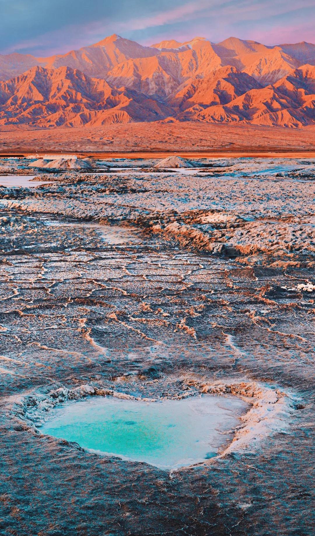 早上用過早餐后我們前往“上帝的藍眼淚”【大柴旦翡翠】,因為她豐富的含鹽量,形成了天然的翡翠綠色,如同鑲嵌在荒漠中的寶石,故名翡翠湖。由于鹽池所含礦物質不同,翡翠湖還會隨著不同時間段太陽光照的變化而變化,時而碧綠如翡翠、時而澄澈蔚藍。翡翠湖目前仍是一處尚未開發的原始風景地,在這里你能細細品味遠離喧囂的寧靜舒適、空曠荒蕪,隨意一坐,自有意境,別有一番風味。