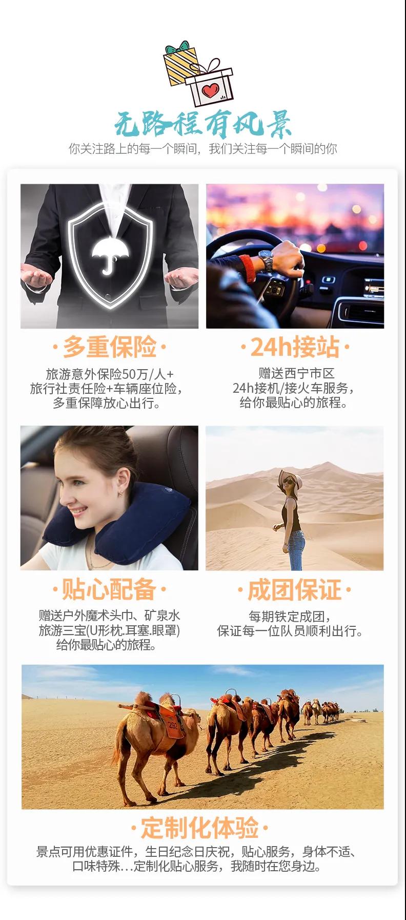 青海湖+敦煌莫高窟+茶卡鹽湖+東臺吉乃爾湖+九層妖塔+祁連草原+嘉峪關+南八仙魔鬼城+大柴旦翡翠湖+鳴沙山月牙泉+水上雅丹+張掖丹霞+G315U形公路+崗什卡雪峰