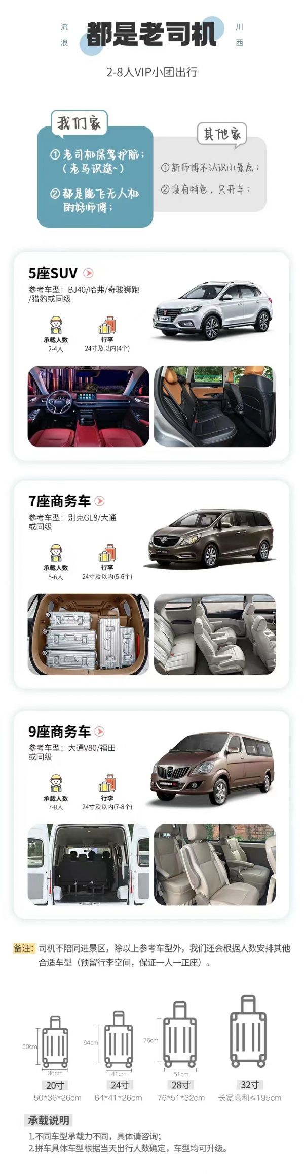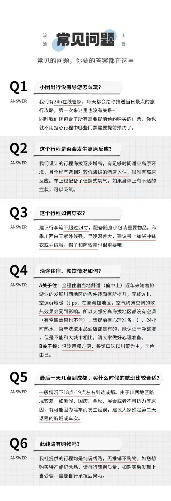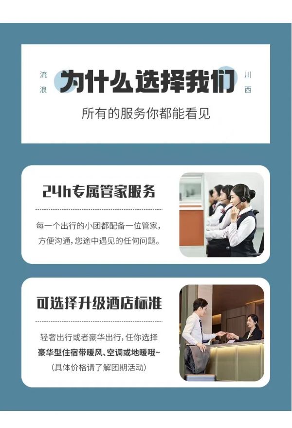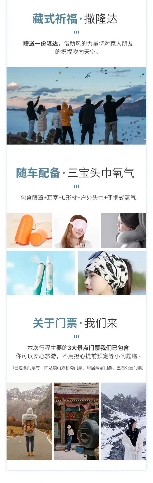 (3)因川西各景點間路途遙遠孕婦、哺乳期兒童、70歲以上老人不宜報團(65-70歲之間參團需簽訂免責協議)