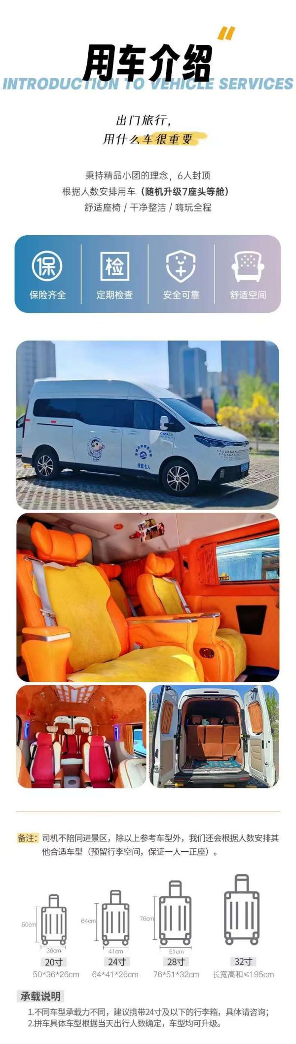 2-6人小團,豪華7座頭等艙(不保證用車車型),保證每人一正座;