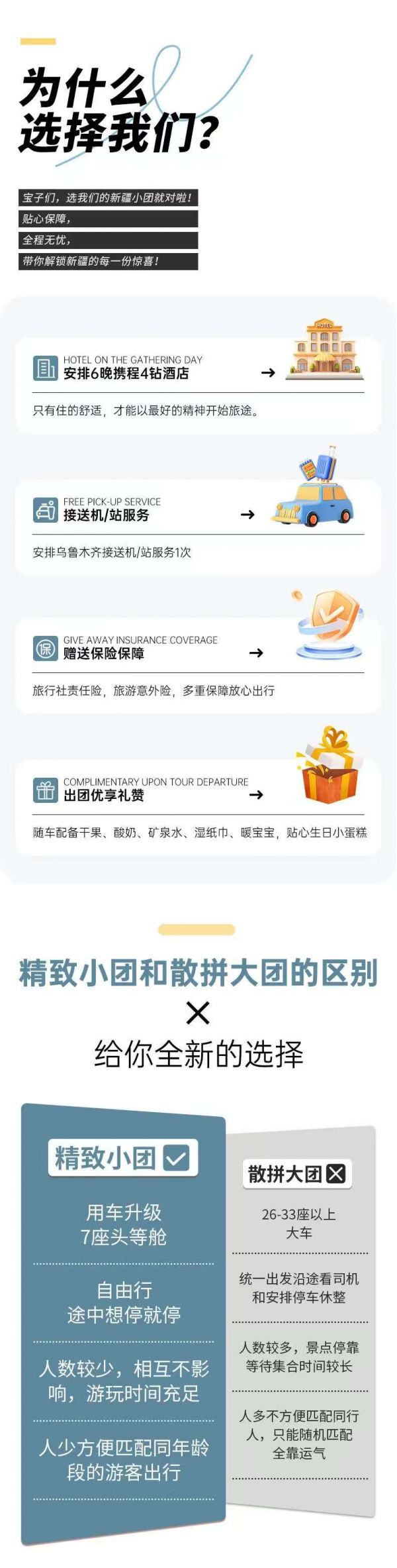 本行程為全國 2-6 人拼團(2 人成行/6 人上限),因隨機組客特性,無法提前篩選拼友的年齡、性別、地域等信息。特別提示:對社交環境有特殊要求的游客,建議選擇定制包車服務。