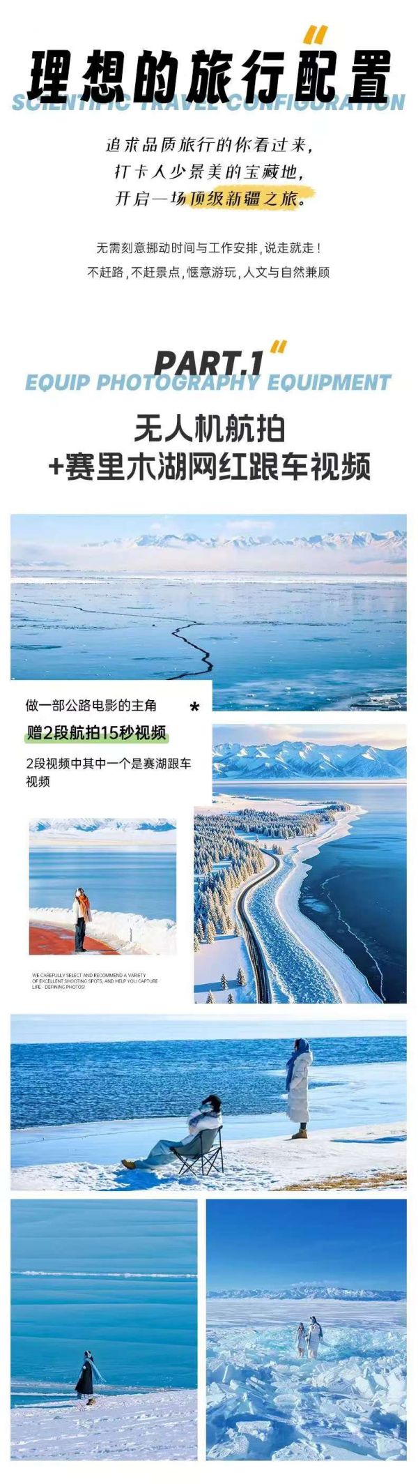 贈送無人機2段15秒視頻(含賽里木湖跟車視頻),(贈送項目不去不退,僅限天氣情況良好安排;如遇師傅沒有拍攝2段15秒視頻,退50元/人);
