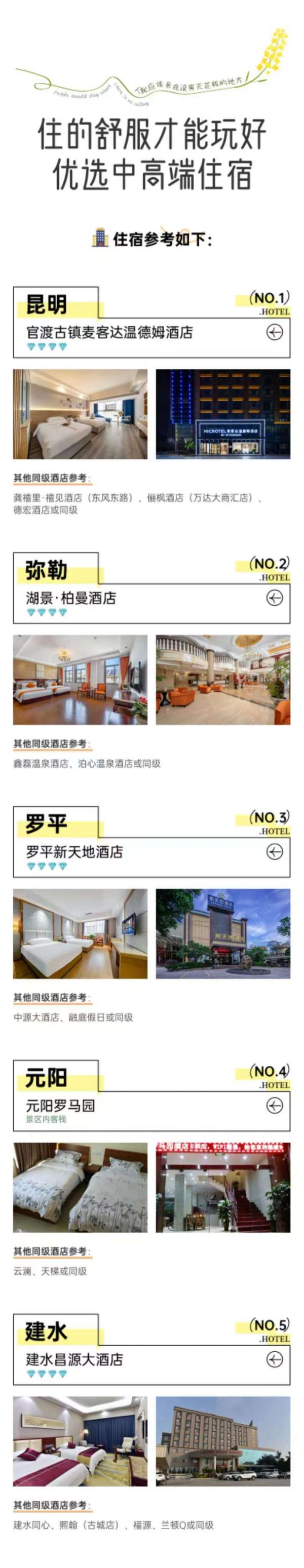 安排1餐特色美食(蒙自米線);含5頓早餐;