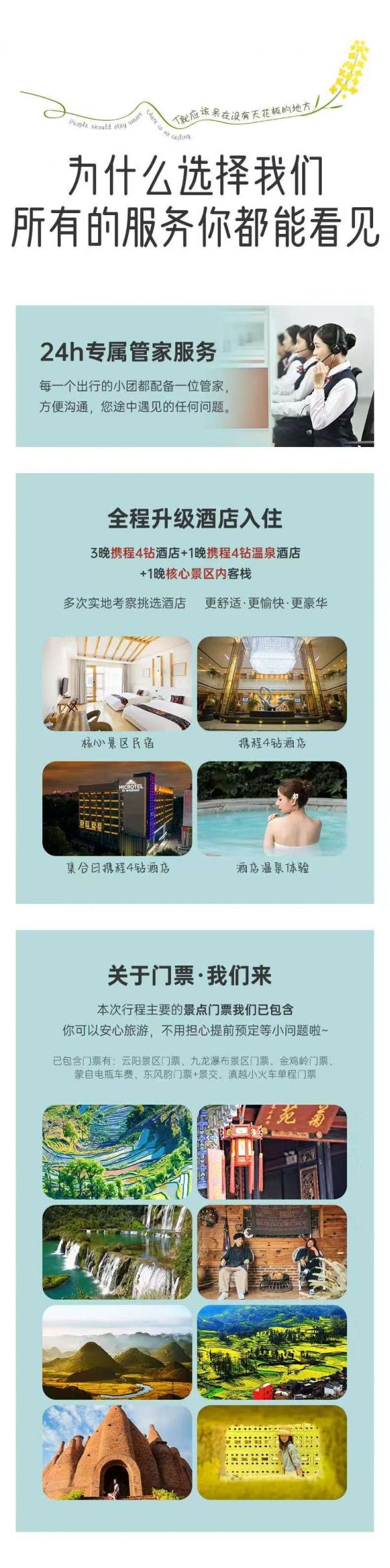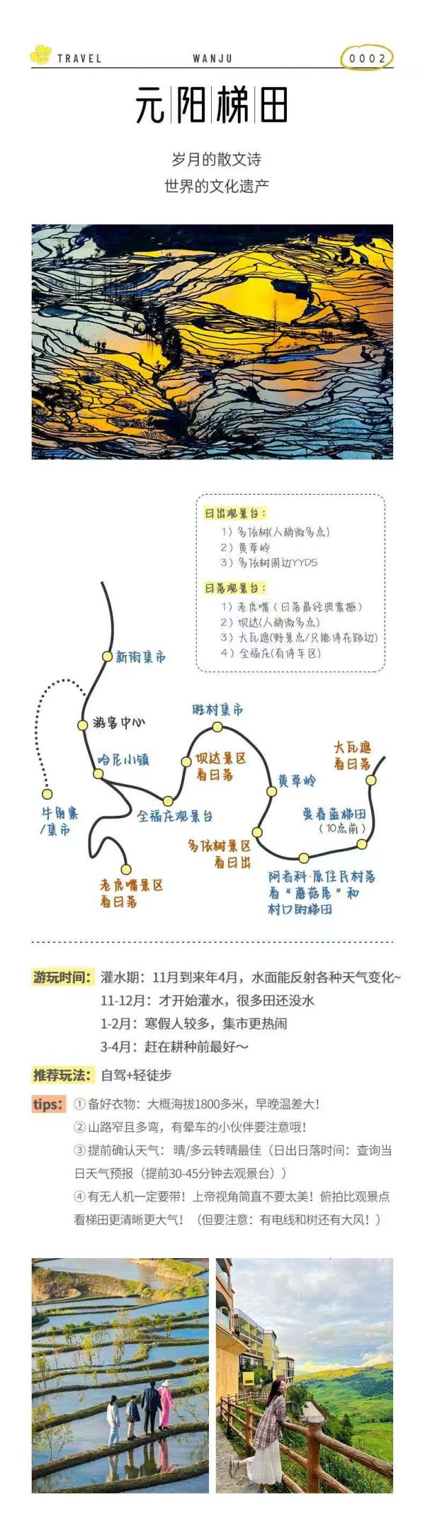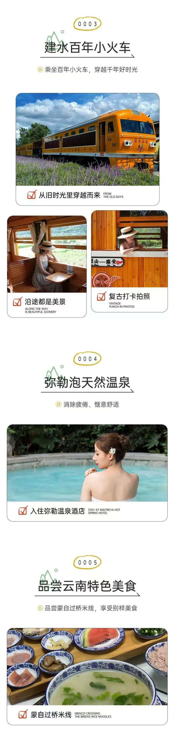 包含元陽景區(qū)門票(元陽現(xiàn)實(shí)行單點(diǎn)單獨(dú)檢票制,我們購買為單次門票,不能重復(fù)進(jìn)入景區(qū),如果希望多次進(jìn)入需另自費(fèi)購門票)、 九龍瀑布景區(qū)門票、金雞嶺門票、蒙自電瓶車費(fèi)、東風(fēng)韻門票+景交、滇越小火車單程門票。