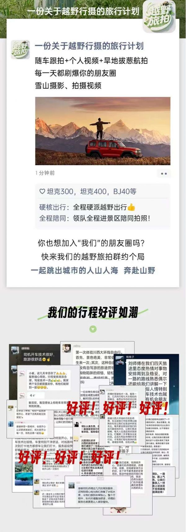 (3)本線路沒有“代購業務”,請不要在團隊中或者完團后,請求駕駛員代購任何產品,如有需要請自行篩選、購買。