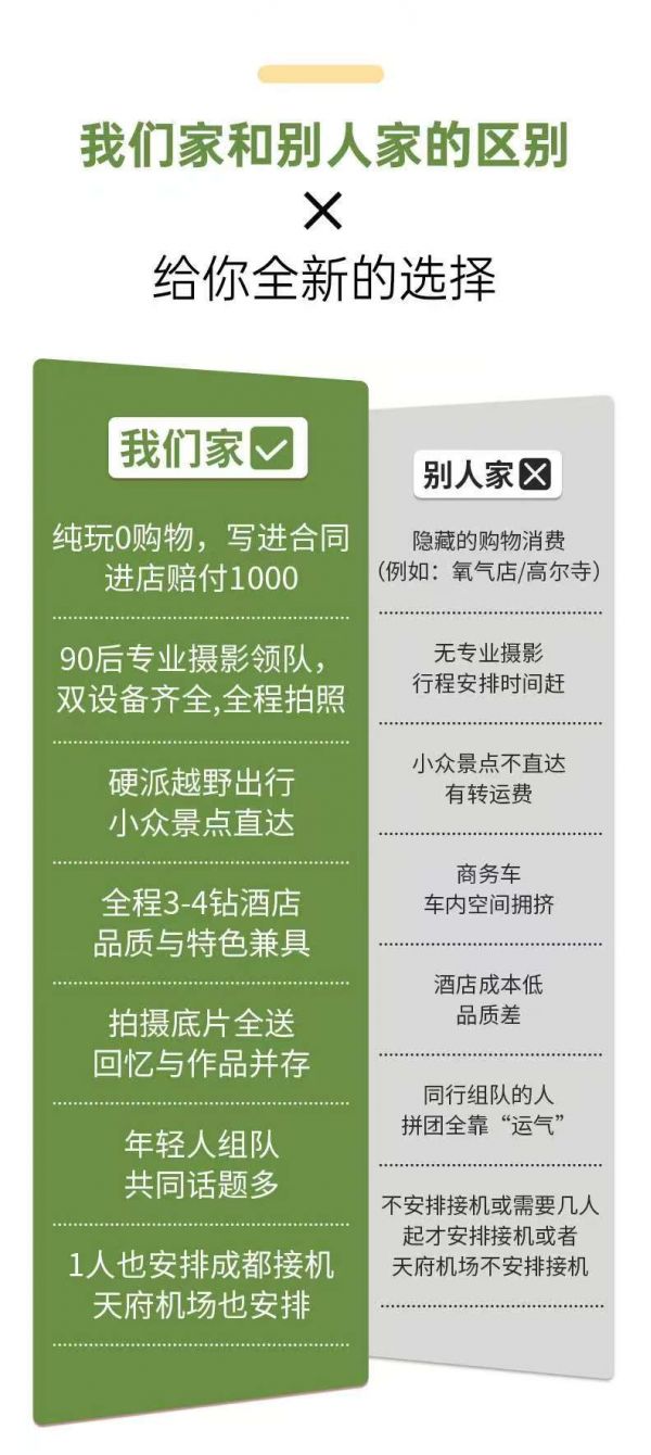 (4)沿途景區景點、餐廳、廁所、加水點、高原緩沖區內設有小賣部、超市、旅游紀念品、手工藝土特產等販賣攤點,非我方安排,請游客根據自身需求及興趣選擇消費,并保留好購物小票以便后續維權;購物時請保管好隨身攜帶的物品,不到人多、擁擠的地方購物,不當眾清點錢包里的鈔票,也不隨商品推銷人員到偏僻地方購物或取物。