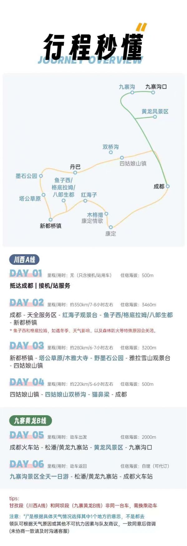 注:甘孜段(川西A線)和阿壩段(九寨黃龍B線)非同一臺車,需換乘動車。