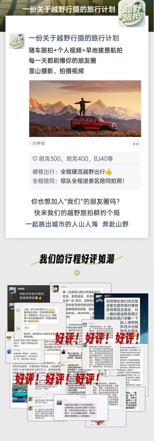 (3)本線路沒有“代購業(yè)務(wù)”,請(qǐng)不要在團(tuán)隊(duì)中或者完團(tuán)后,請(qǐng)求駕駛員代購任何產(chǎn)品,如有需要請(qǐng)自行篩選、購買。