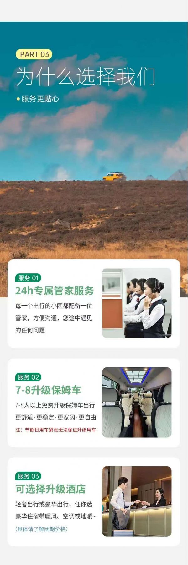 如遇以上情況,我社有權在保證出行安全的情況下調整路線或與游客協商增減景點~~還望理解。(望廣大游客在出行前知曉此類情況,不接受因天氣原因造成的景點路線增減導致的投訴)