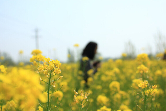滿地的油菜花千姿百態、花團錦簇,有的星星點點,還是花骨朵,好像有點害羞,又好像不給人看它的真面目。還有的露出了金黃色的臉龐。靠近聞一聞還有淡淡清香,沁人心脾,仔細瞧!上面還有幾只蜜蜂,在辛勤勞動呢!花兒真多。每株油菜上有不少枝,枝上生杈,杈上又生杈,每枝杈上開滿了花。俯下身子看,菜花不計其數。突然,一只花蝴蝶飛來,一下飛,一下落,興奮地玩耍著。春風吹拂,菜花搖弋,仿佛滿金流動。田園風光使人愜意。