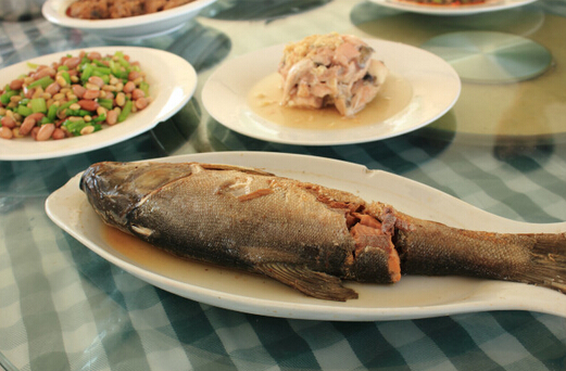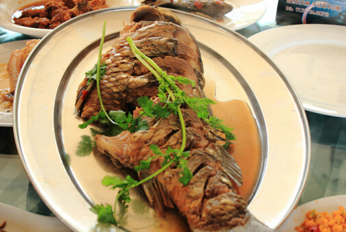 東平湖產的鯉魚、鯽魚、白魚等,肉質肥美,營養豐富。用東平湖產的鮮魚和湖蝦,可烹制魚菜120多種,稱為“全魚宴”。