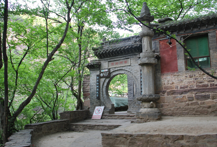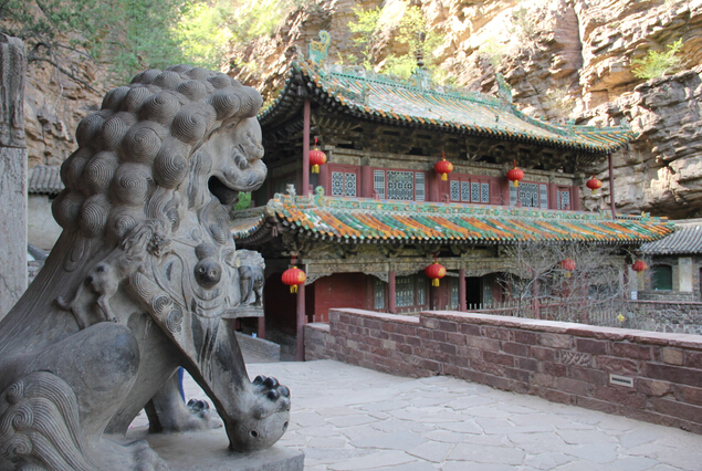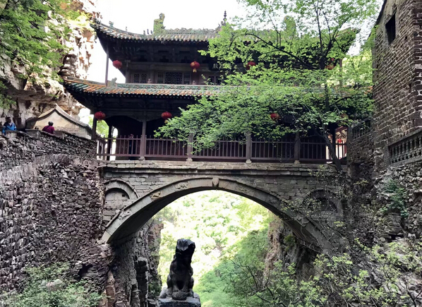 一絕“橋樓殿”。橋凌駕于百仞峭壁之間,仰視藍天一線,俯首萬丈深淵。形制如同趙州橋敞肩拱式。橋上建樓,云飛樓動,樓內建殿,殿內三尊大佛。真是“千丈虹橋望入微,天光云彩共樓飛”,不是仙境勝似仙境,疑是天堂落塵?!,F為中國三大懸空寺之一。