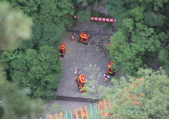 這時,各表演隊在蒼巖山的山門前拉開場面,進行表演。整個廟會期間,各村的花會、武術等表演隊都在此盡興表演。