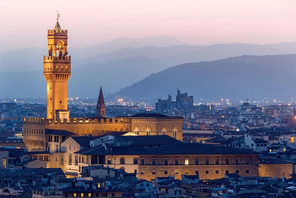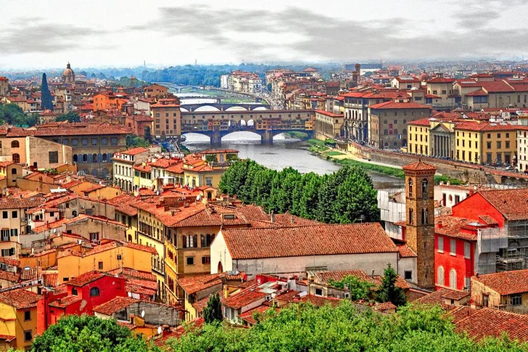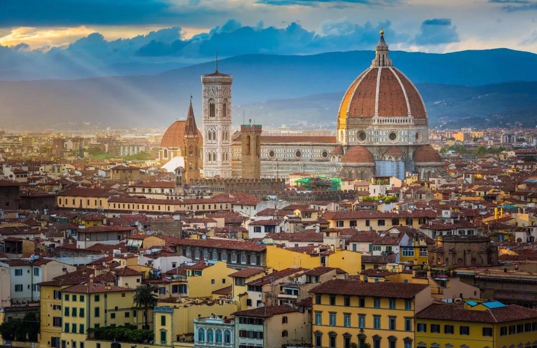 文藝復(fù)興的城市佛羅倫薩,橘紅色圓頂?shù)氖ツ赴倩ù蠼烫檬欠鹆_倫薩最重要的地標(biāo),由教堂、洗禮堂、鐘樓組成,洗禮堂的正門由于大師米開朗基羅的贊譽(yù)而得到“天堂之門”的美譽(yù)。