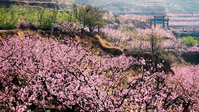 有句詩說的好:“到此已無塵半點,近山更有紅千種”;這里,您可以看見,滿園的桃樹,連綿的花海,盡在其中,令人傾倒,令人心醉;正如詩中所寫:“一朵桃花紅,已知報春來,浩瀚千萬朵,錦霞簇似海?!?/span>