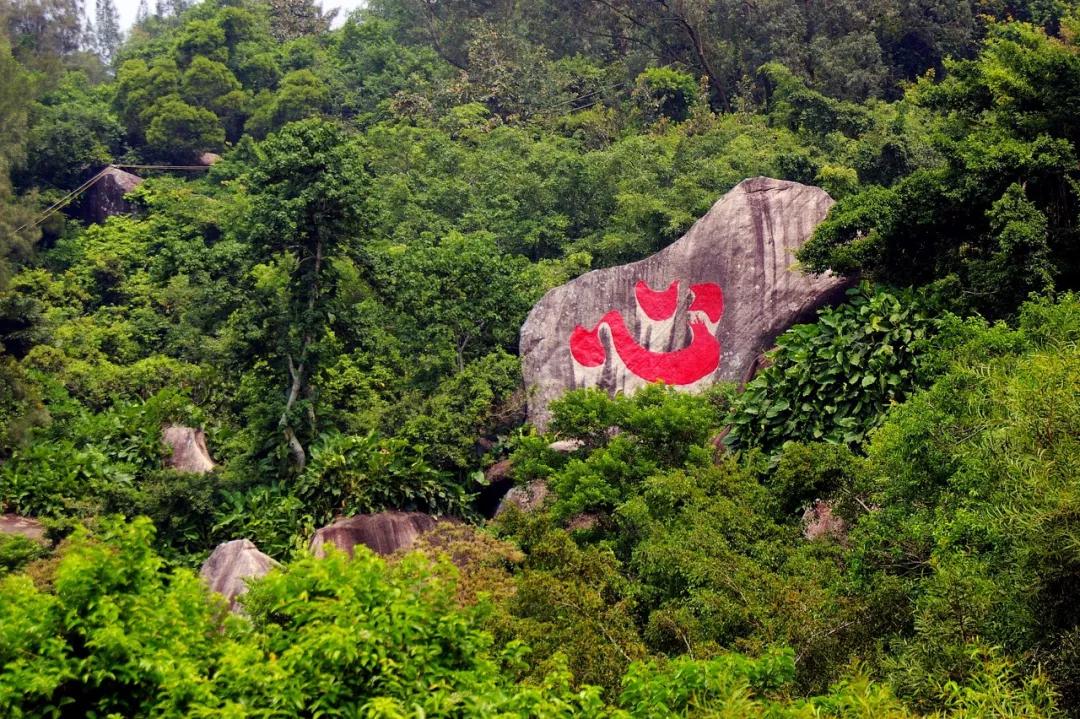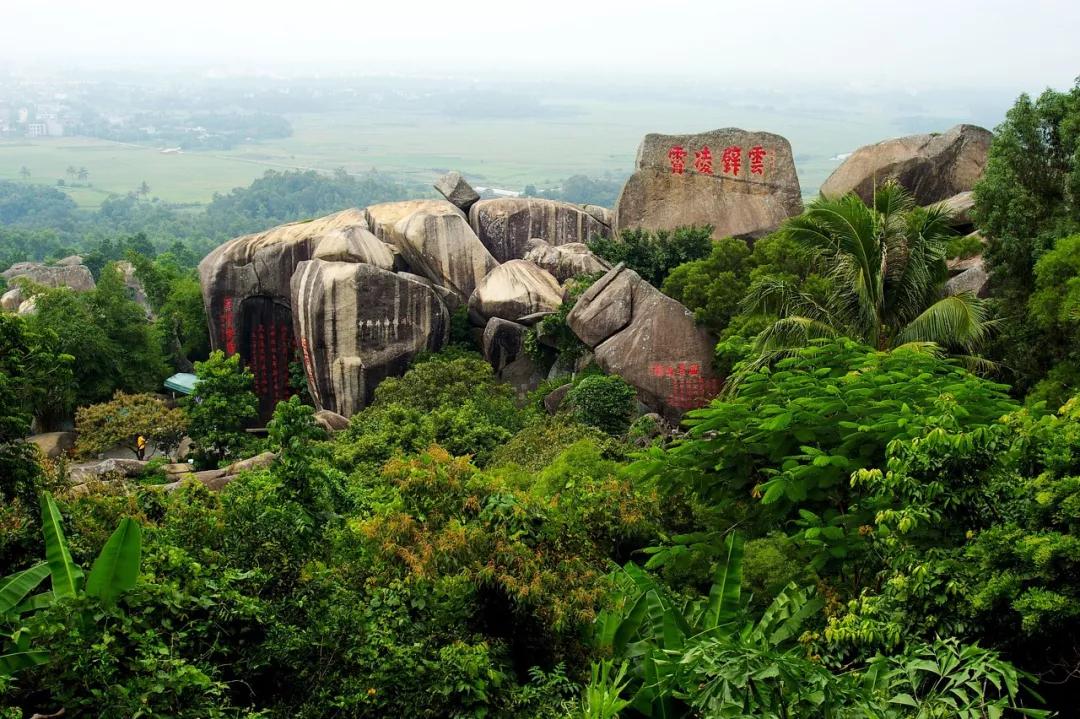 電視劇連續劇《紅樓夢》片頭中有一塊神姿仙態的“飛來石”,它就在被稱為“海南第一山”的東山嶺上。