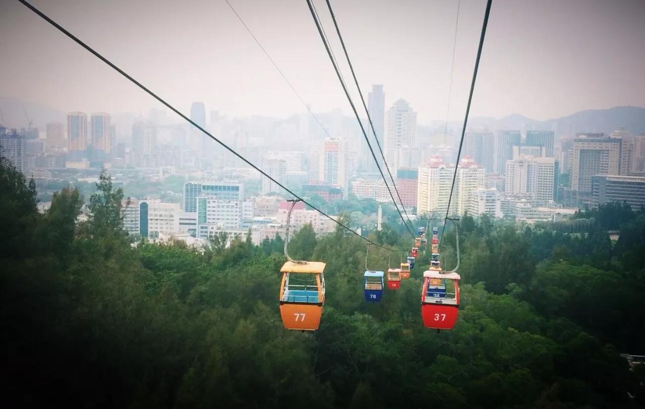 景區旅游觀光纜車觀賞可觀廈門全景,景區內樹木蔥郁,稱的上是廈門島內的天然大氧吧。