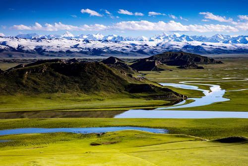 前往(塞湖環湖背靠雪山,湖邊是廣闊的草原,湖水清澈蔚藍,6月正是賽湖西岸大片野菊花開放時節)全天行程300公里,6小時車程。