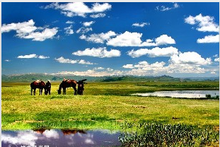 巴音布魯克一唐布拉草原,(中國第二大高山草原,天鵝湖,九曲十八灣,四周雪山環抱,特有的黑頭羊藏毛牛成群,面積23835平方公里),全天行程300公星,需6小時。
